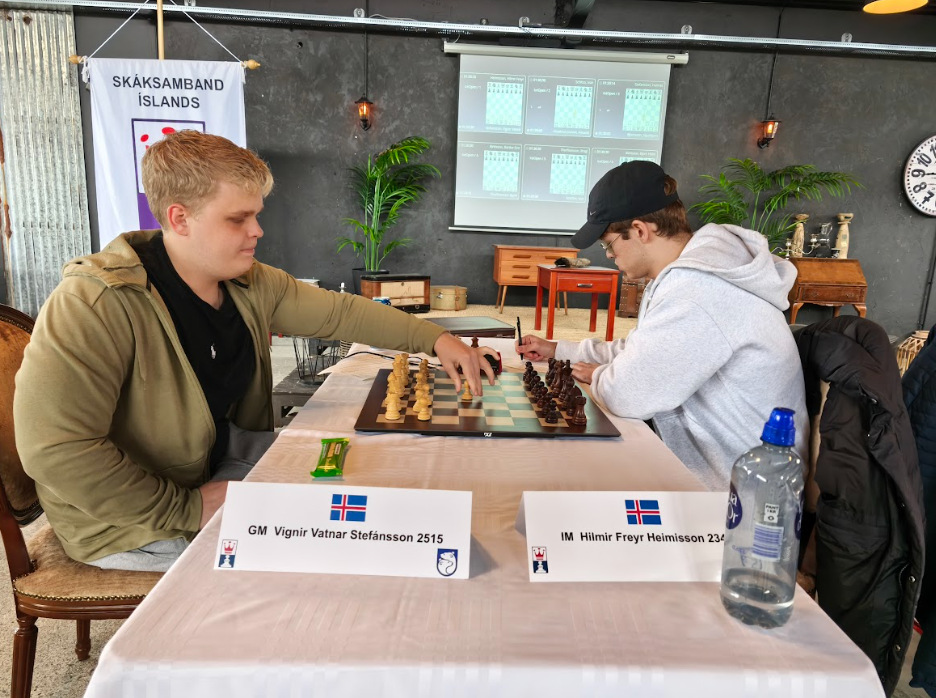 Vignir lagði Hilmi að velli. Þessir þekkja hvorn annan ansi vel og hafði það gríðarleg áhrif á ákvarðanatöku og tímanotkun strax í byrjun. Hilmir virtist vera fyrri til að hverfa frá sínum „leik“ og niðurstaðan varð auðveldari sigur fyrir Vigni heldur en flestir áttu von á.