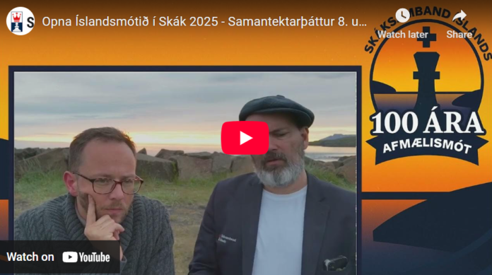 FIDE meistararnir Ingvar Þór og Björn Ívar fara yfir gang mála í áttundu umferð frá því í gær. Miðnætursólin og kvöldkyrrðin reyndist fínasta stúdíó á Blönduósi!