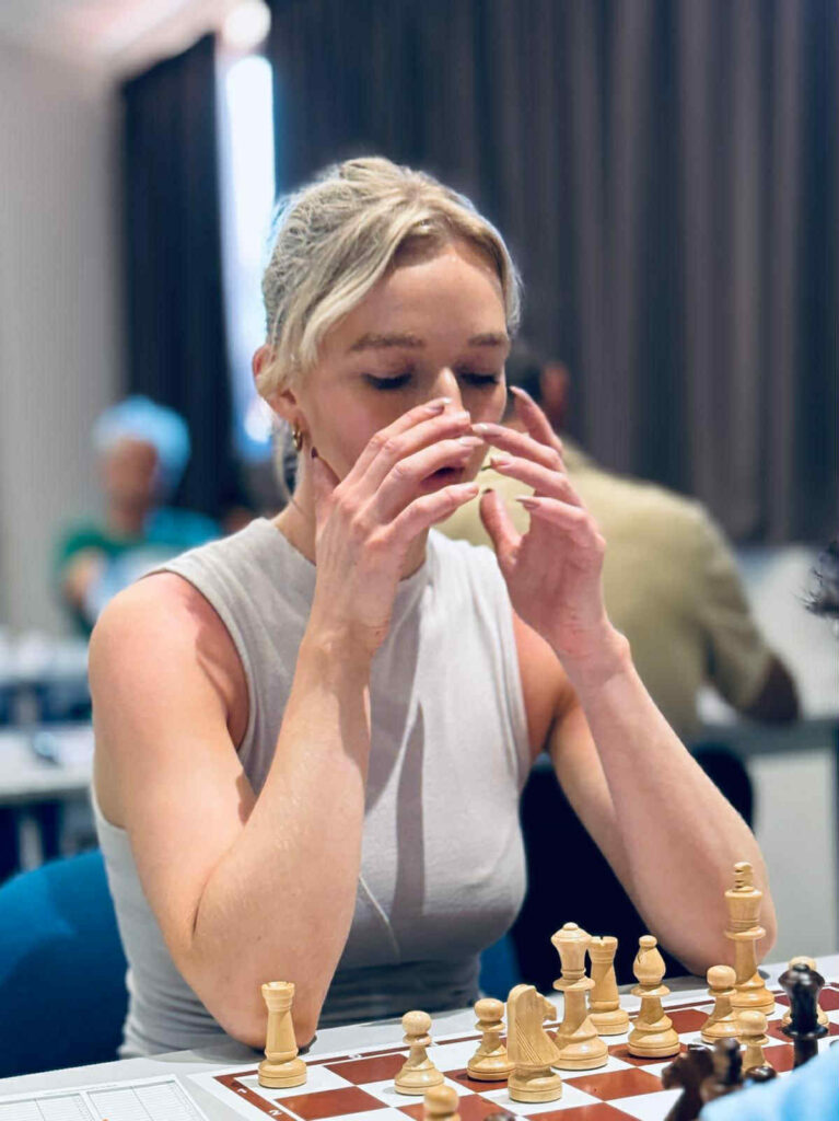 Jóhanna hefur ekki náð sér á strik og tapaði gegn Frank Triger (1957) með svörtu.