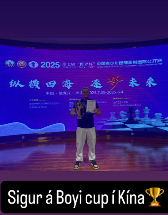 Stórmeistarinn Vignir Vatnar Stefánsson náði sér í enn einn mótasigurinn þegar hann varð hlutskarpastur á Boyi Cup – China Youth Chess International Open Tournament 2025. Með Vigni í för var Aleksandr Domalchuk-Jonasson.