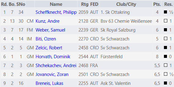 Lokaniðurstaðan semsagt 6 vinningar af 9 og var Gummi bestur á stigum af þeim sem fengu 6 vinninga og endaði í 4. sæti. Horvarth sem Gummi tapaði fyrir í 6. umferð var í sérflokki og fékk 8 vinninga og tveir skákmenn enduðu með 6,5 vinning.