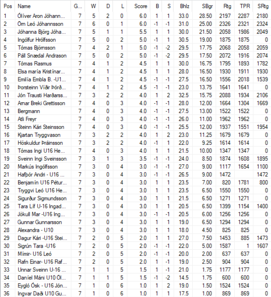 Stillingaratriðið breytti þannig aðeins formlegri röð efstu manna, en breytti þó ekki þeirri staðreynd að forseti Skáksambands Íslands, Jóhanna Björg Jóhannsdóttir, endaði ein í þriðja sæti með 5,5 vinninga og tryggði sér þar með verðlaunapallsæti.