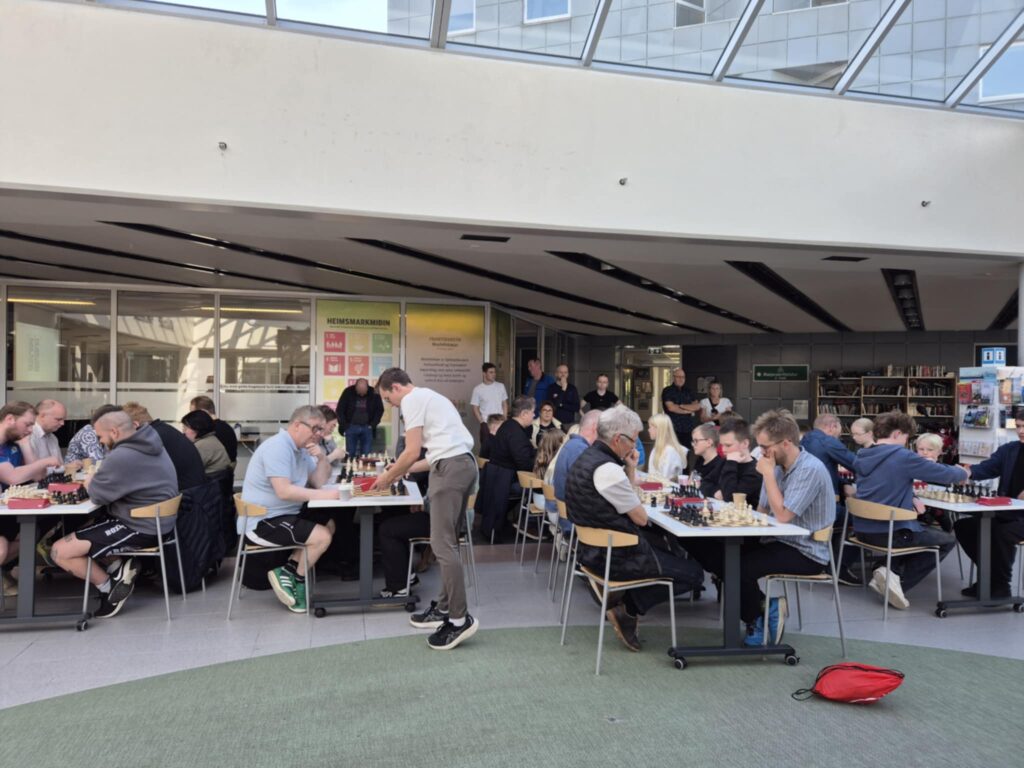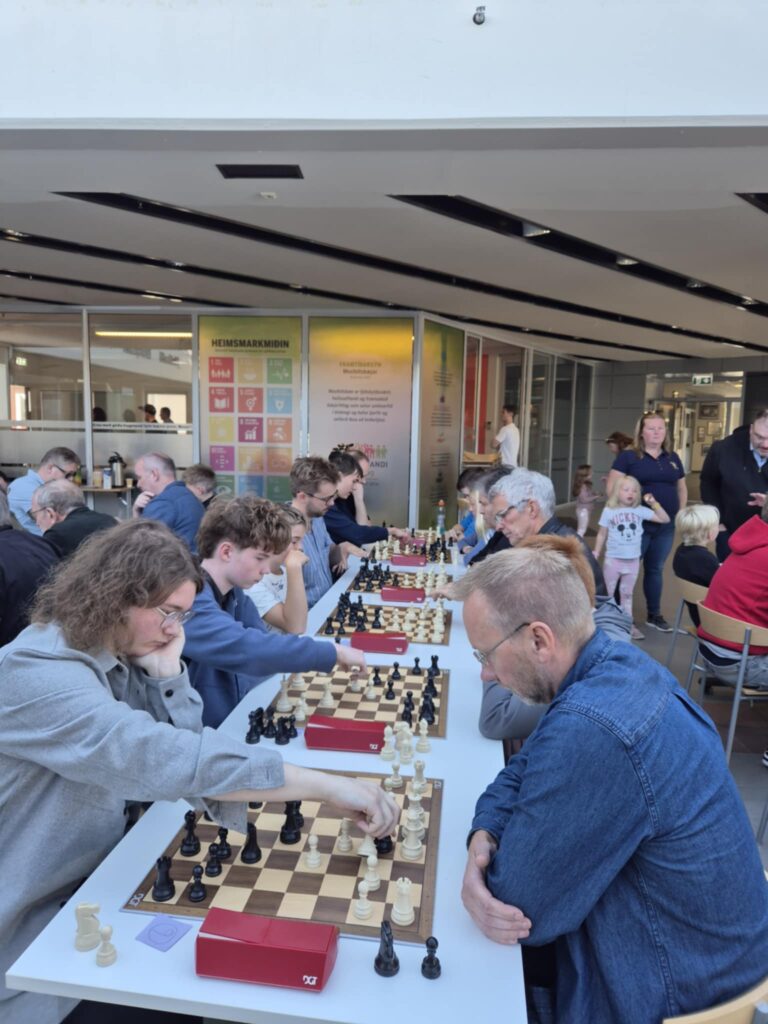Mótið var fjölmennt, spennandi skákir voru tefldar og stemningin var frábær meðal bæði keppenda og áhorfenda.