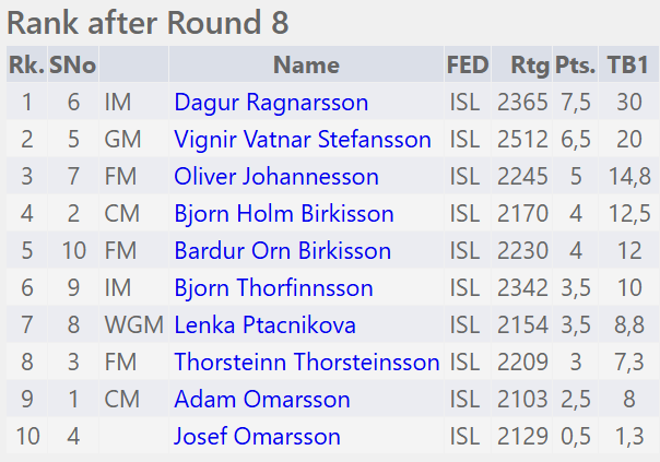 Úrslit úr 7. og 8. umferð: