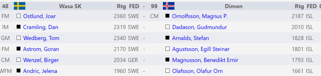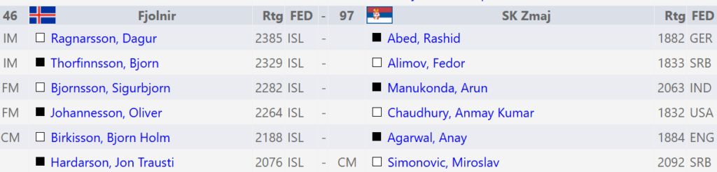 Alls tefla 38 skákmenn fyrir Íslands hönd á Ródos og flestir sterkustu skákmenn þjóðarinnar. Aðeins fjórar þjóðir eru fjölmennari en Ísland sem er magnað en það eru: England, Þýskaland, Holland og Grikkland.