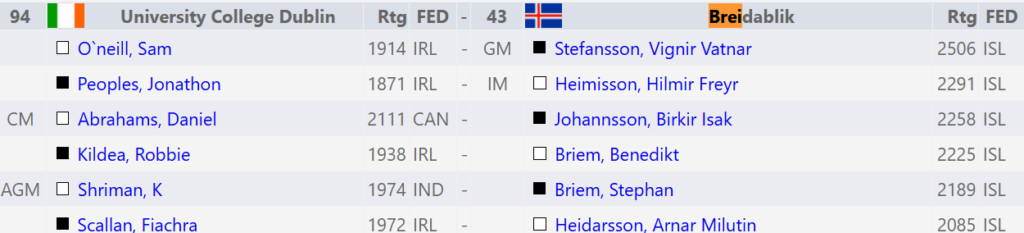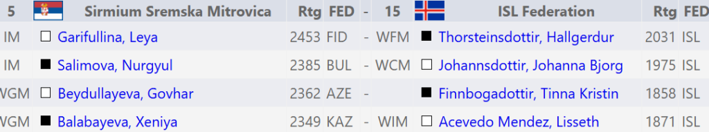 Í kvennaflokki eru kvennalið sem teflir undir nafni Íslands