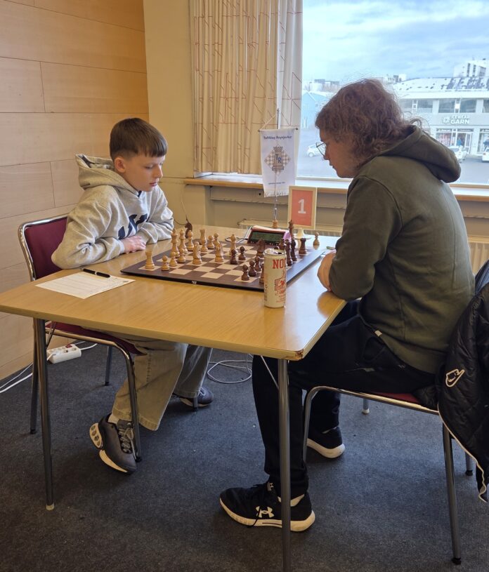 Á fyrsta borði mættust Birkir Hallmundarson og Arnar Breki. Strax í byrjuninni kom Birkir á óvart með að tefla 1.e4 sem hann hefur ekki gert mikið af áður. Eftir byrjunina endaði hann einu peði yfir en á móti var Arnar Breki með sterka biskupa á miðborðinu. Staðan var lengi vel í jafnvægi en eftir miðtaflið náði Arnar Breki að fá upp endatafl sem var hartnær unnið fyrir hann. Staðan leit ekki vel út fyrir hvítan en Birkir náði að finna leið til að virkja stöðuna sína og fá nauðsynlegt mótspil. Í tímahrakinu komu nokkrir afleikir frá Arnari Breka og Birkir nýtti sér það til að vinna skákina. Góður sigur hjá Birki sem er einn efstur með 5 vinninga fyrir lokaumferðina á miðvikudaginn.