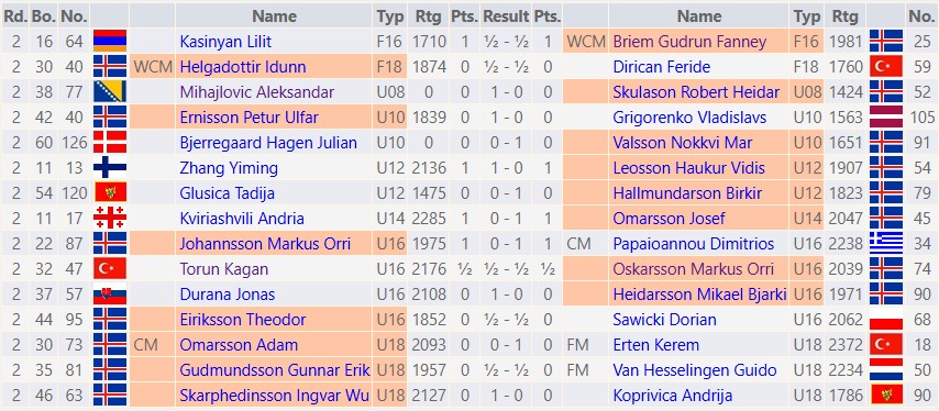 Pétur Úlfar, Nökkvi Már, Birkir, Jósef, og Ingvar Wu unnu allir í dag. Landsliðskonurnar Guðrún Fanney og Iðunn gerðu báðar jafntefli.
