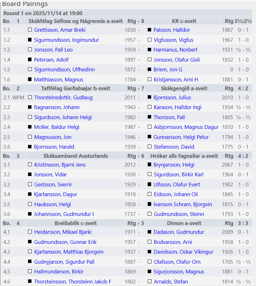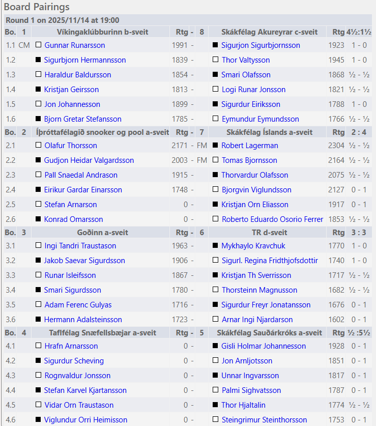 Fyrri hluti Íslandsmóts skákfélaga 2025-26 stendur nú yfir í öllum deildum. Skákdeild KR byrjar einstaklega vel í Úrvalsdeild en ansi margar sveiir hafa látið til sín taka í fyrri hlutanum og ætla greinilega að skipta um deild!