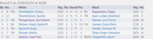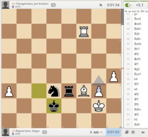 Þar mættust Dagur og Jón Kristinn þar sem Dagur var með kolunnið þar til a4 þar sem Jón náði að bjarga jafntefli með Re1
