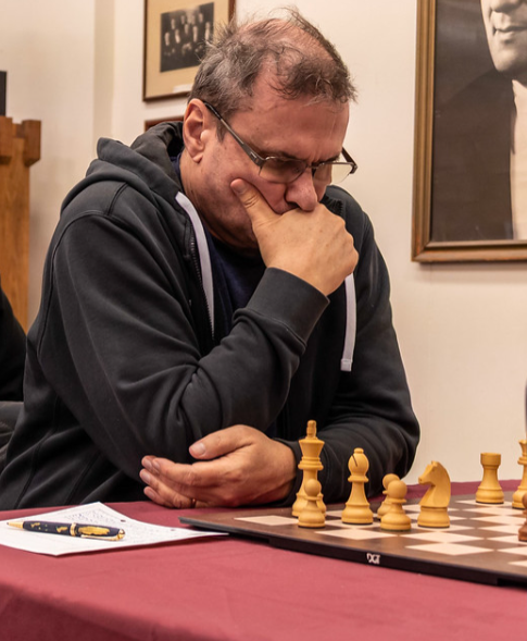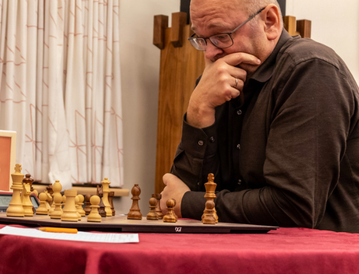 Hrafn Loftsson nagar sig væntanlega í handarbökin en hann missti niður unnið endatafl gegn Markúsi Orra. Í tímahraki missti Hrafn ítrekað af nokkuð einfaldri vinningsleið: