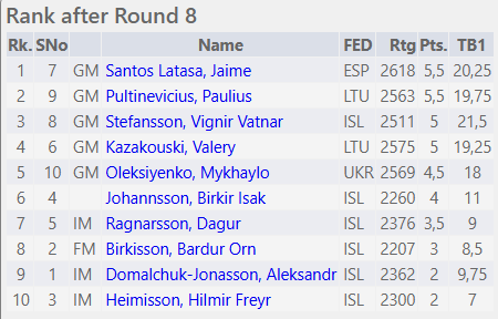 Lokaumferðin hefst á morgun klukkan 11:00 í Stúkunni í Kópavoginum, áhorfendur velkomnir. Kazakouski stendur í vegi fyrir IM-normi Birkis Ísaks, verðugt verkefni! Vignir verður að leggja bárð og treysta á að Aleksandr og Hilmir Freyr hjálpi honum aftur á toppinn!