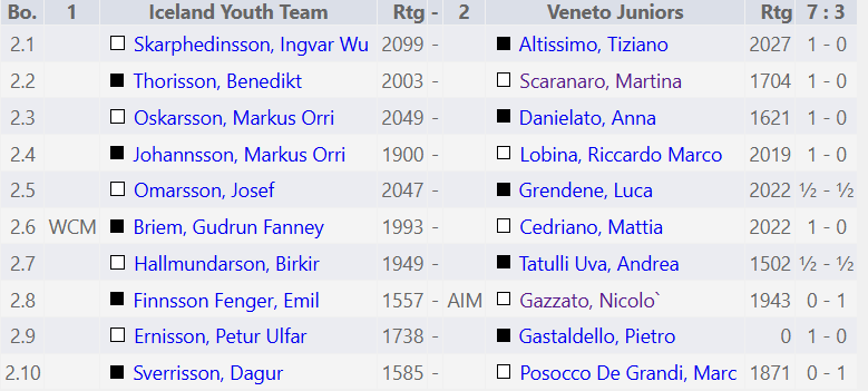 Josef gerði jafntefli í sinni skák, stöðubaráttuskák með nokkrum þyngslum. Guðrún Fanney vann sigur með svörtu í caro-kann, sýndi mikla seiglu og baráttuvilja og kreysti sigur úr litlu.
