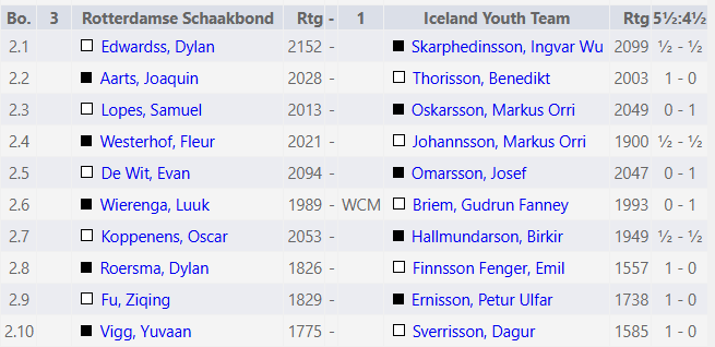 - Beinar útsendingar aðeins 2 efstu borð (u20) í hverri viðureign eru í beinni.