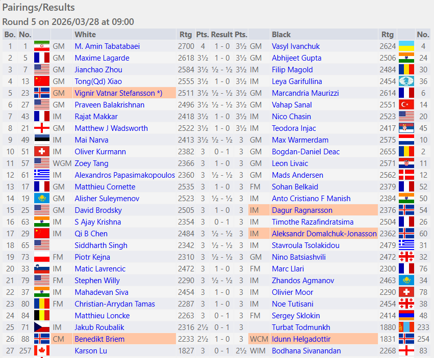 — ReykjavikOpenChess (@ReykjavikOpen) March 28, 2026