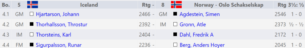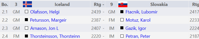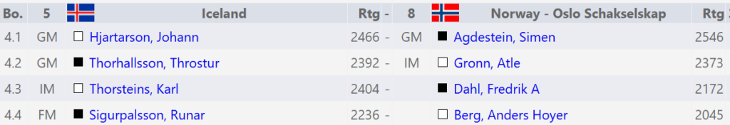 Í áttundu umferð mætir íslenska sveitin liði FIDE (Rússar). Þétt sveit sem hefur enn ekki tapað einni einustu skák. Ljóst er að eins jafnt og mótið er að líklegast þarf lágmark einn sigur og eitt jafntefli til að komast á pall. Allavega tvær lykilumferðir framundan og byrjum á Rússunum!