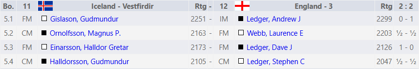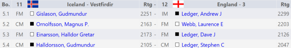 Vestfirðingasveitin mætti England-3, Ledger sveitinni.