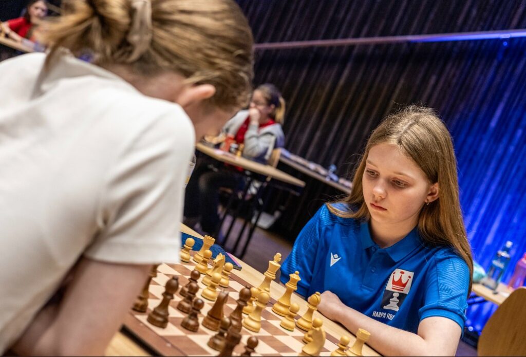 Harpa Hrafney hefur byrjað vel og hefur 2,5 vinning. Hún er í 2.-5. sæti að lokinni þriðju umferð. Halldóra hefur 1,5 vinning, Likhitha 1 vinning, Katrín Ósk hálfan vinning eins og Miroslava en Emilía Klara á enn eftir að komast á blað.