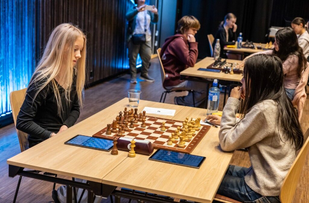 Sigrún Tara vann mikinn seiglusigur með svörtu mönnunum í 2. umferð gegn Chloe Elisabeth Homtako (1606) frá Noregi.