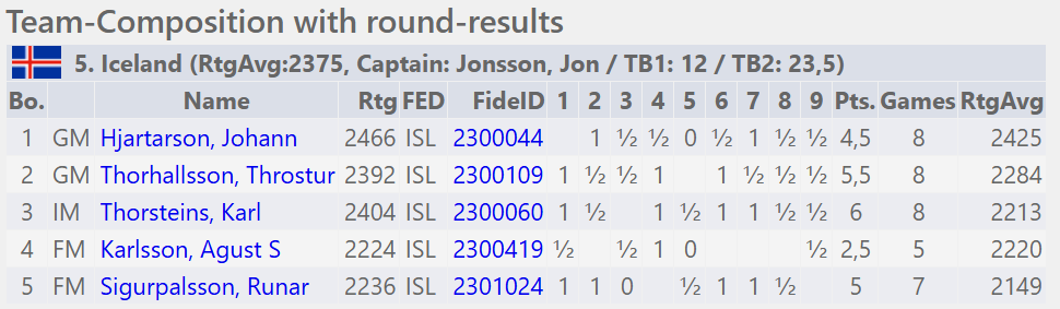 Lítið hægt að kvarta undan einstaklingsárangri. Flestir heilt yfir að tefla vel og ná góðum úrslitum. Rúnar flottur á varamannsborðinu og virkilega gaman að sjá Karl Þorsteins koma svona sterkan inn eftir langt hlé frá taflmennsku.
