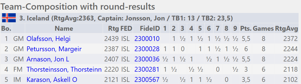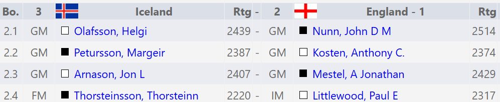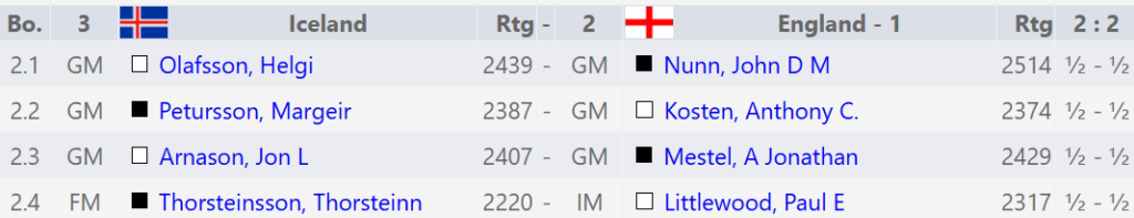 Helgi samdi tiltölulega stutt með hvítu gegn Nunn á efsta borði. Nunn vissulega taplaus og erfiður viðureignar en menn verða heldur ekki heimsmeistarar á að semja með hvítu.