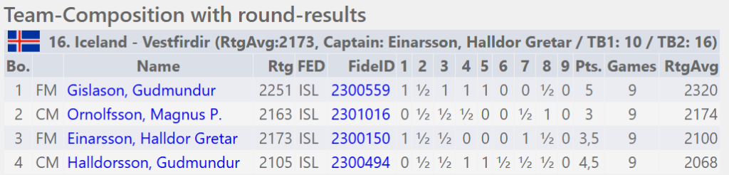 Guðmundarnir voru aflakóngar hjá Vestfirðingunum. Gíslason á fyrsta borði gaf aðeins eftir í lokin eftir algjörlega frábæra byrjun.