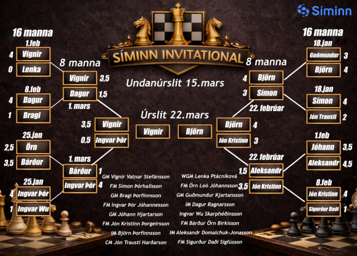 Úrslit Síminn Invitational í netskák fara fram á sunnudagskvöldið kl. 19. Í úrslitum mætast stórmeistarinn Vignir Vatnar Stefánsson og hans fyrsti skákkennari, alþjóðlegi meistarinn, Björn Þorfinnsson.