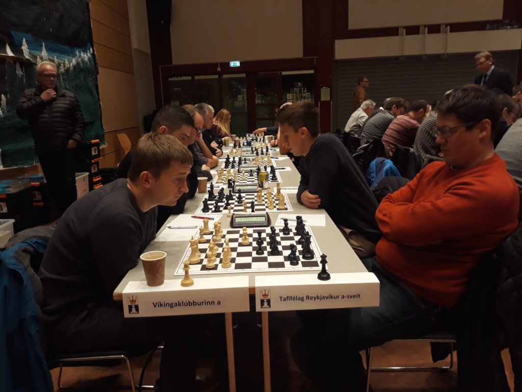 Íslandsmeistar Víkingaklúbbsins hófu titilvörnina með 5½-2½ sigri á Taflfélagi Reykjavíkur. Skákfélagið Huginn vann Taflfélag Garðabæjar.