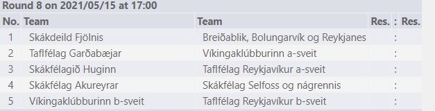 Áttunda og næstsíðasta umferð hefst kl. 17. Viðureignir Hugins og TR sem og Akureyringa og Selfyssinga verða sýndar beint.