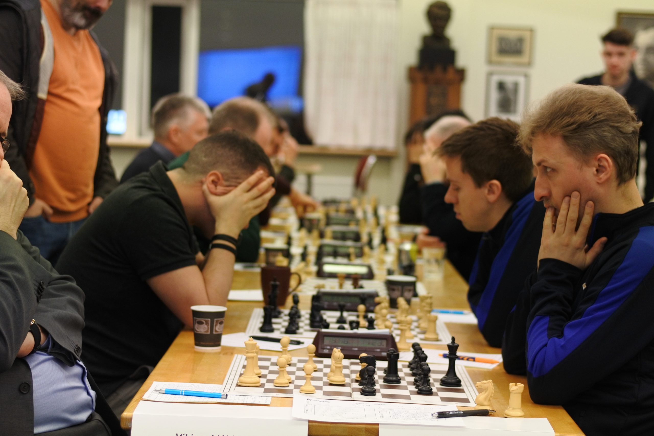 Jafntefli varð í æsispennandi viðureign Víkinga og TR-inga. Mynd: HS