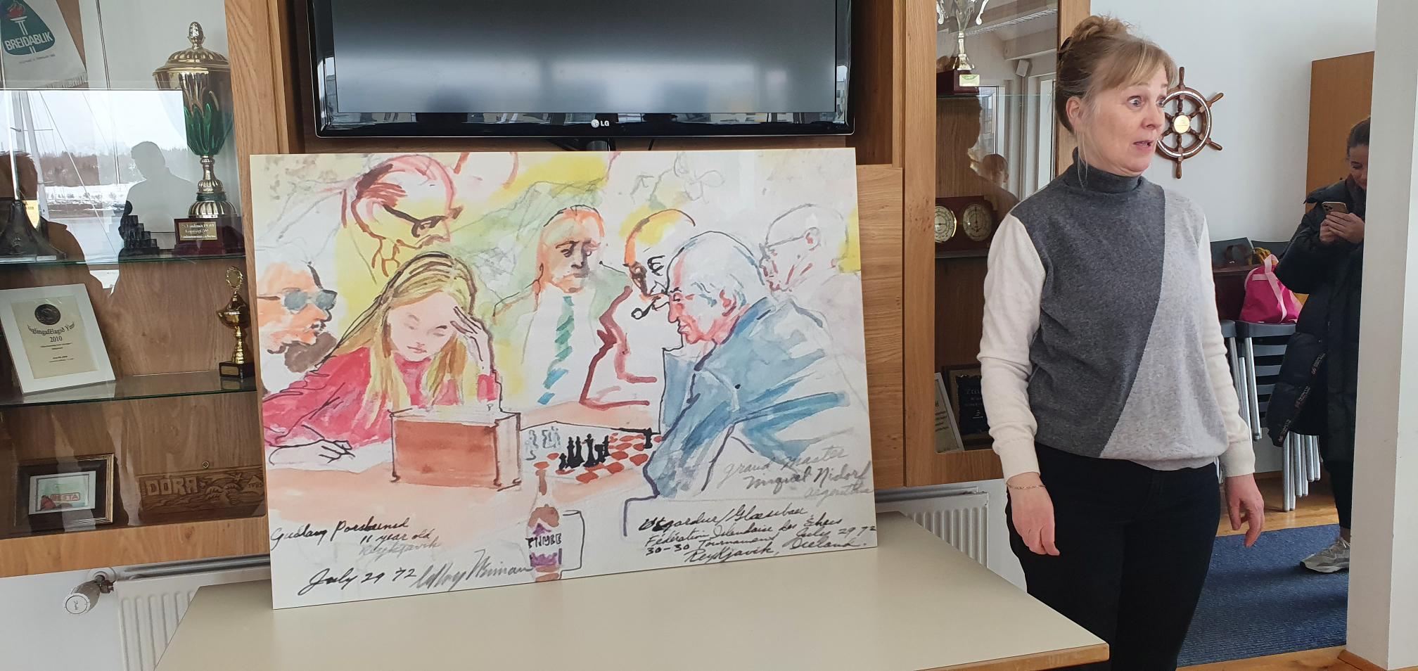 Áður en það gerðist var afhjúpuð eftirprentun af teikningu eftir hinn þekkta bandaríska listamann,LeRoy Neiman sem hann gerði á meðan „Einvígi aldarinnar“ stóð sumarið 1972. Guðlaug tefldi þá í opnu móti og mætti argentíska stórmeistaranum og goðsögninni Miguel Najdof, en myndin þykir fanga sérstaklega vel það andrúmsloft sem ríkti í skákklúbbnum í Glæsibæ sem dró til sín marga nafntogaða skáksnillinga.